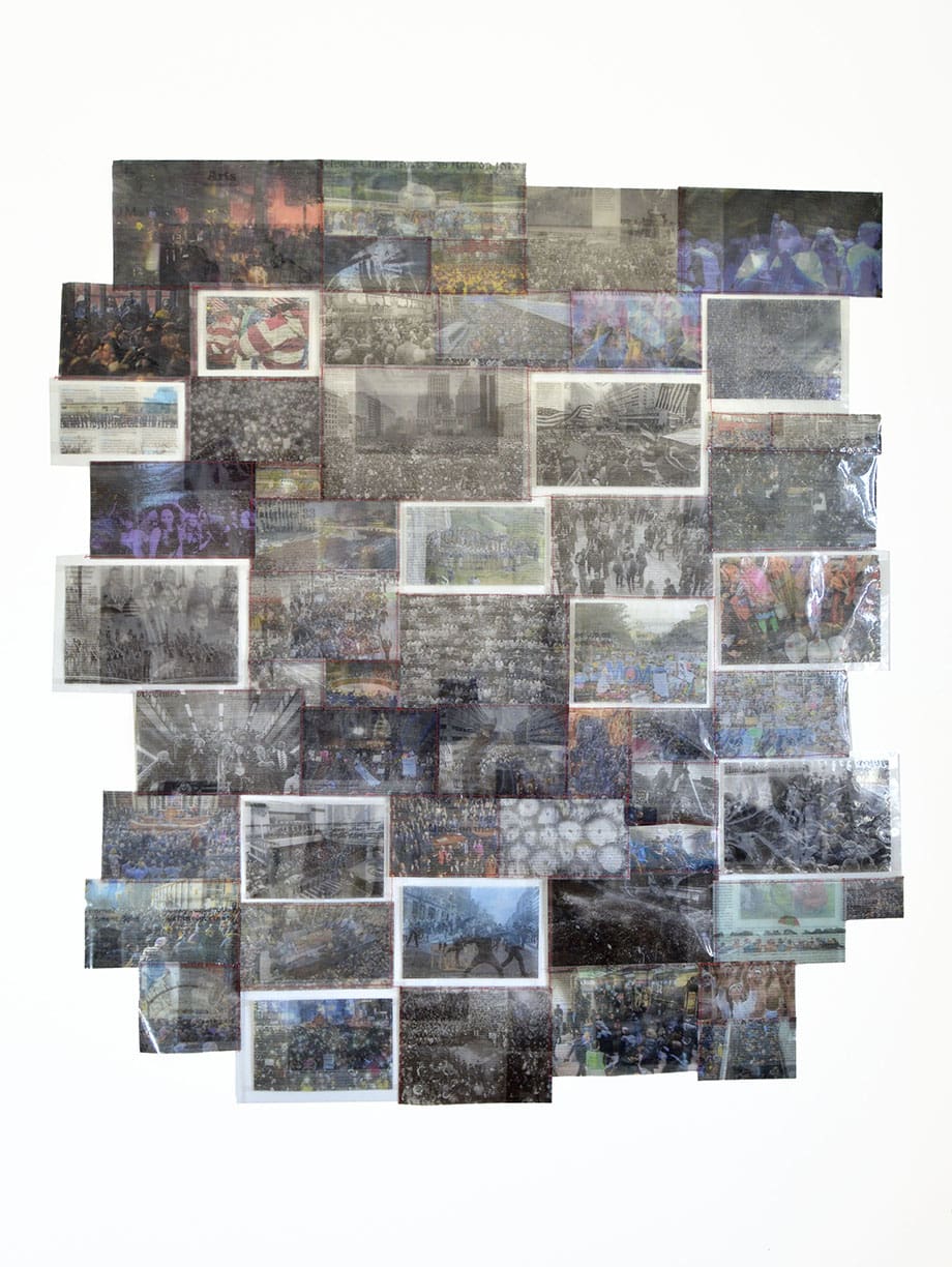 As an interdisciplinary artist, I use labor and time-based mediums as a way to underscore the repetition that is embedded in our daily lives. I am specifically interested in the conflation of consumerism and politics in mass communication. Process as a means of transformation is always at the forefront of my studio practice. Through a breakdown of familiar objects, prolonged performance, and repetition of materials, I investigate these objects and actions in order to question where the system ends and the individual begins. Through the process of collecting, transforming and organizing images and materials found within our day-to-day lives, I am attempting to locate and understand the construction of U.S. current ideologies, the paradigms it shapes, and the ways that those systems affect and create personhood.